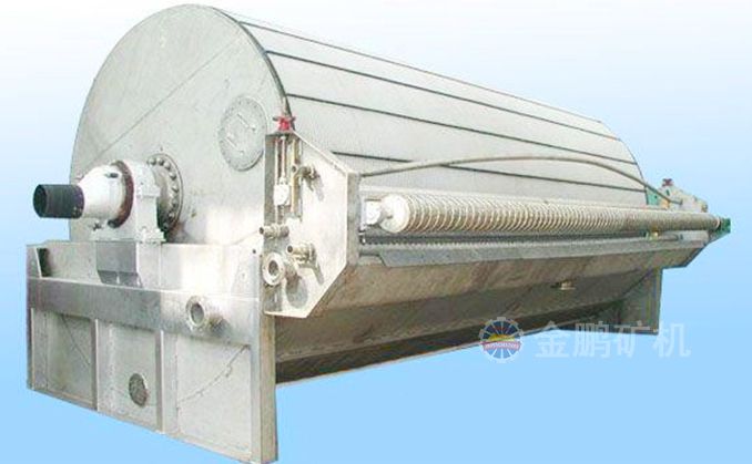 由于折帶式過濾機改變了卸料方式、加強了對濾布的清洗,便基本上克服了這些缺點。當濾餅經(jīng)過真空區(qū)以后,濾布就由一套輥子引出筒外進行卸料和清洗,清洗好的濾布再回到筒體重新工作。